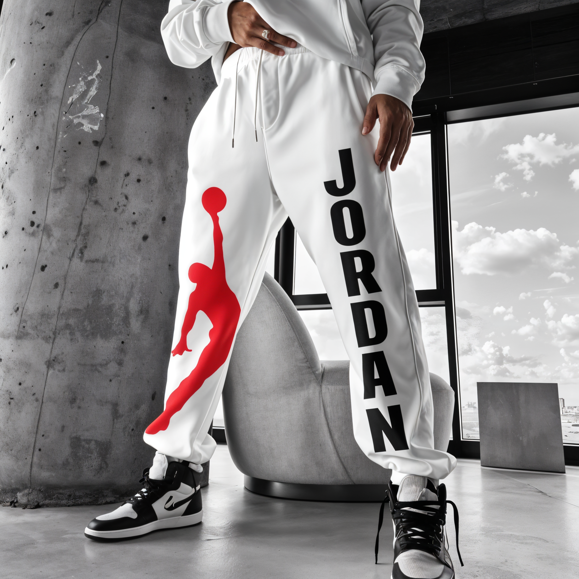 Front Jordan - Sweatpants - White Cotton Fleece 104