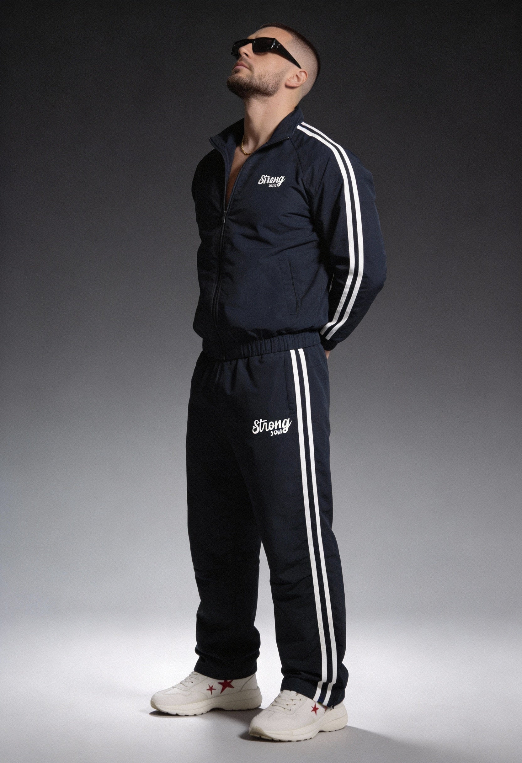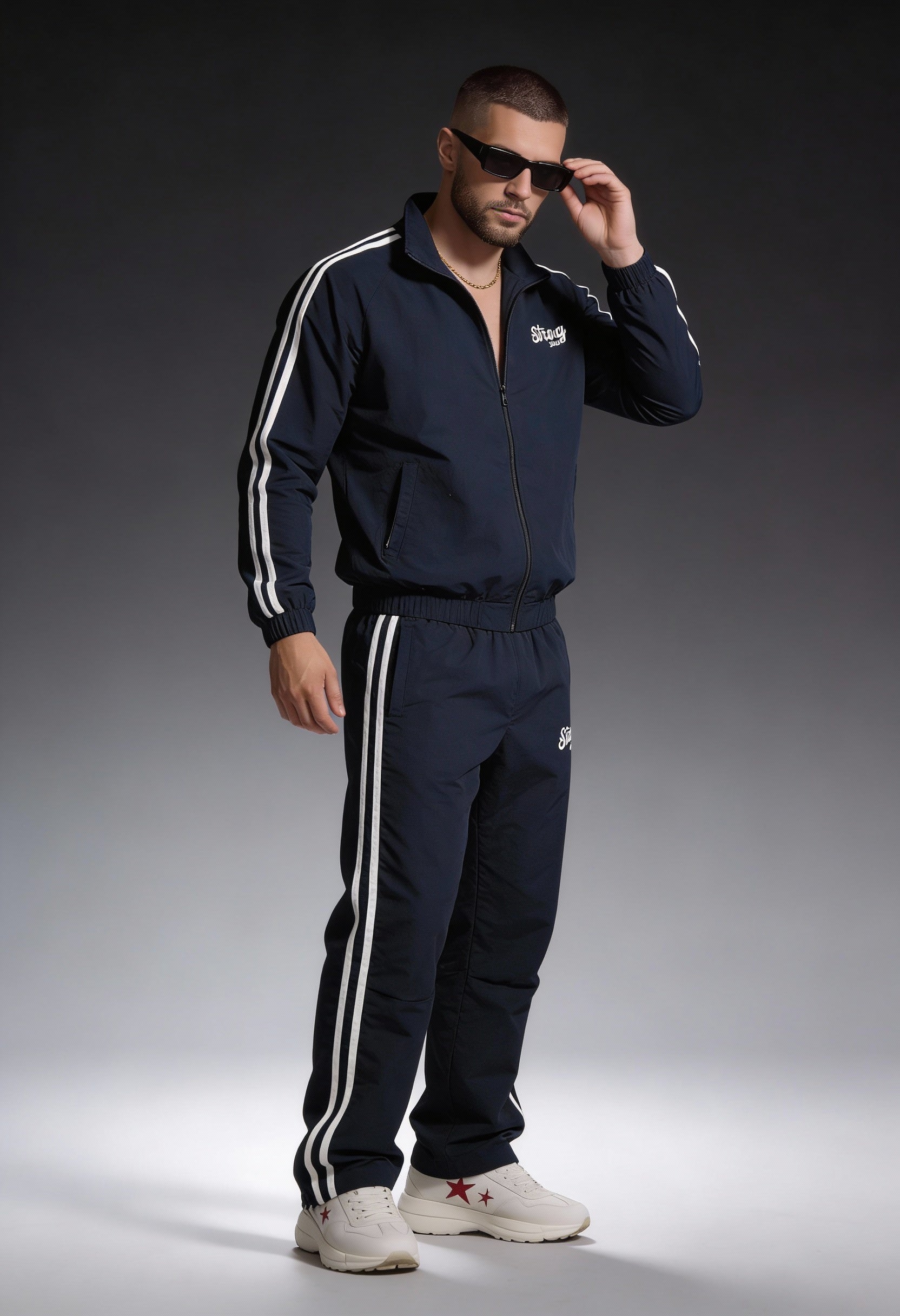 DESIGN: The flagship pants perfectly capture the essence of old-school style with their loose-fitting design and vintage aesthetics. These joggers, made of polyamide, offer durability. With no cuffs and two side strips in contrasting colors, they add a touch of uniqueness and style to your ensemble. Elevate your casual look to new heights.